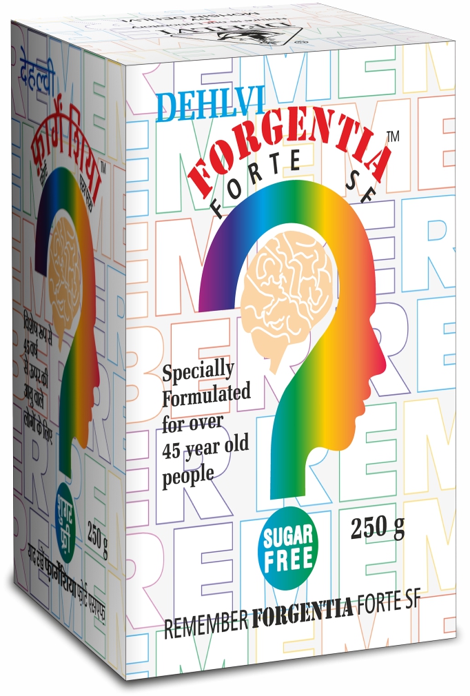 Dehlvi Forgentia Forte-SF is a premium, thoughtfully crafted herbal formulation specially designed for seniors to reduce episodes of forgetfulness, support cognitive health, memory, and overall vitality. As natural aging can lead to a gradual decline in mental sharpness, focus, and energy, Dehlvi Forgentia Forte-SF provides targeted nutritional and herbal support to help counteract these changes. Enriched with a synergistic blend of potent herbs traditionally valued for their nootropic benefits, mental clarity support and emotional well-being enhancement. Dehlvi Forgentia Forte-SF works to sharpen memory, improve concentration, and boost cognitive function. It also helps in reducing mental fatigue, enhancing clarity, and revitalizing energy levels, empowering seniors to stay active, alert, and mentally agile. Free from synthetic additives and harsh chemicals, this natural brain tonic supports healthy aging and encourages a vibrant, fulfilling lifestyle.