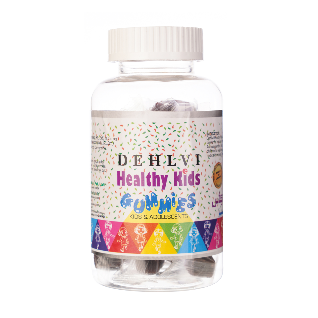 Dehlvi Healthy Kids Gummies, a fun and delicious way for your child to get the daily dose of powerful natural ingredients! These tasty gummies are packed with Ashwagandha, Giloy, and Amla, a carefully chosen blend to support your child's well-being naturally. Ashwagandha, an adaptogenic herb, is renowned for its ability to support a healthy stress response, promoting relaxation and focus in young minds. Giloy is documented scientifically to boost the immune system and support overall well-being and Amla is a natural source of Vitamin C which is a potent antioxidant that helps to protect growing bodies from free radical damage.